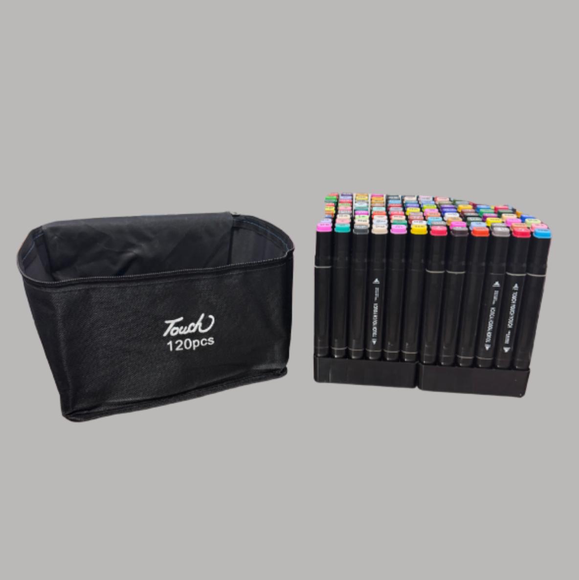 Kit marcadores artísticos com 120 cores de pontas agudas e funcionais.